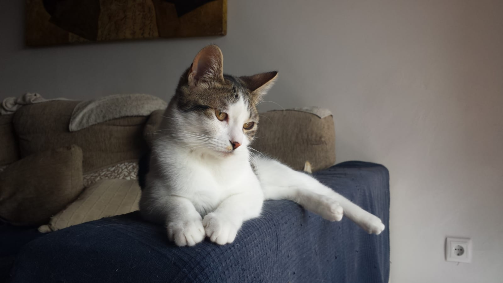 Cosmo me ha dado un amor inmenso desde el día que llegó a mi vida. Es un compañero fiel, cariñoso y muy sociable con las personas. Siempre ha sido una fuente de consuelo y alegría, y por eso esta decisión no es nada fácil para mí. Cosmo es un gato europeo común, macho, nacido en