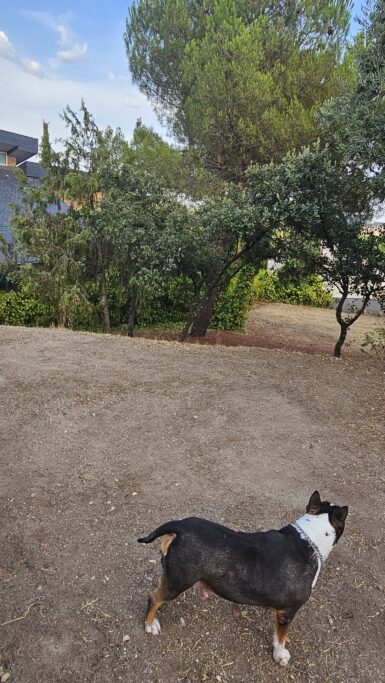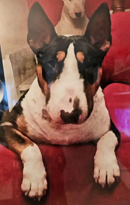 La perra tiene 9 años y siempre ha estado con nosotros ha convivido con niños y con otro bull terrier macho, nunca hemos echado a criar a la perra.