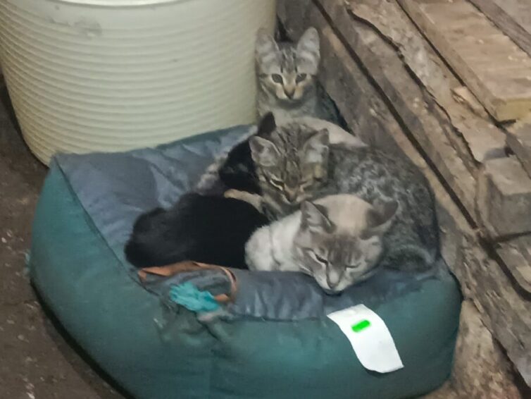 Los gatitos están empezando a socializarse: aún son algo desconfiados, pero cada vez se dejan tocar más. Me preocupa su seguridad, por lo que busco adopciones responsables para ellos.