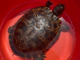 Buenos días, Con gran dolor en el corazón, doy en adopción mi tortuga de agua por circunstancias personales pues ya no puedo prestarle la atención que merece. Desconozco la especie exacta de la misma, sólo que es de agua y tiene en la piel un patrón amarillo. Creo que es macho pero tampoco lo puedo