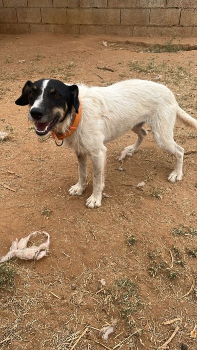 Él llevaba mucho tiempo solo en mitad de la nada sobreviviendo a base de cazar conejos y de la comida que le ponían algunos trabajadores de una estación fotovoltaica que se encontraba cerca. En todo momento se mostró cariñoso y sumiso y fue muy fácil cogerlo cuando fuimos a su rescate 🤗
