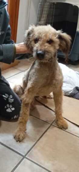 Lo tenían atado a una cadena. Es precioso, es un perro de aguas y se le ha cortado el pelo porque tenía muchos nudos.