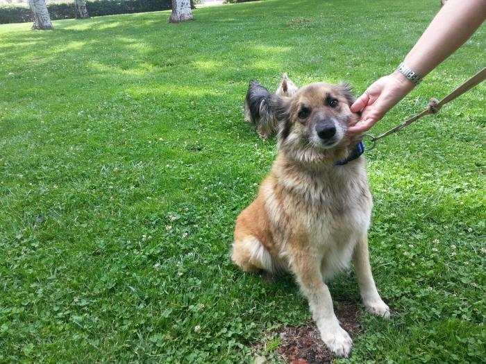 Es de tamaño mediano, pesa unos 17 kilos, y tiene unos 7 años aproximadamente.