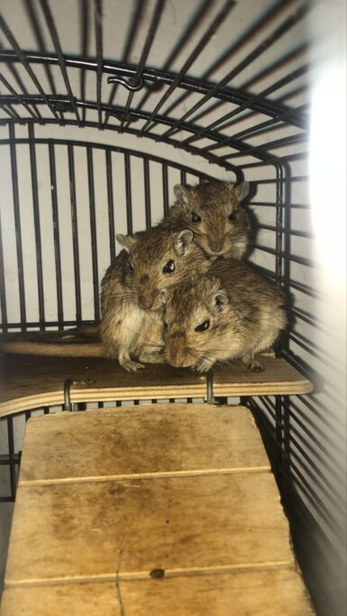 Piedra es una rata husky doméstica amigable y bastante curiosa. Estuve viviendo en Granada unos años y me sentía algo solo así que tuve la idea de adoptar un roedor, pero al terminar mis estudios tuve que volver a la casa de mis padres y creí que les gustaría pero todo lo contrario. Me quedaría